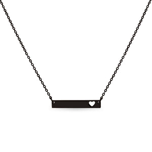Blank Cutout Heart Bar Necklace: Black