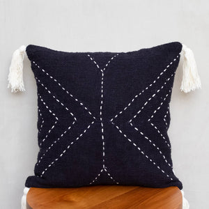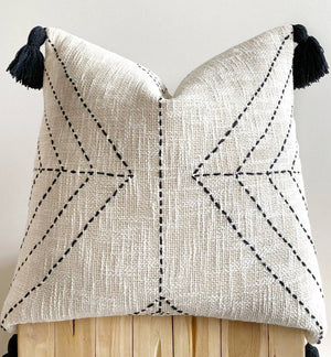 Boho Cushion Cover / Throw Pillow - Geometric Black Tassel