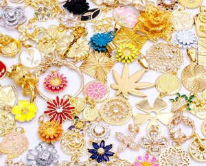 Bulk Gold Flower Charm Bracelet Necklace Charm Bar Supply: 10 pieces