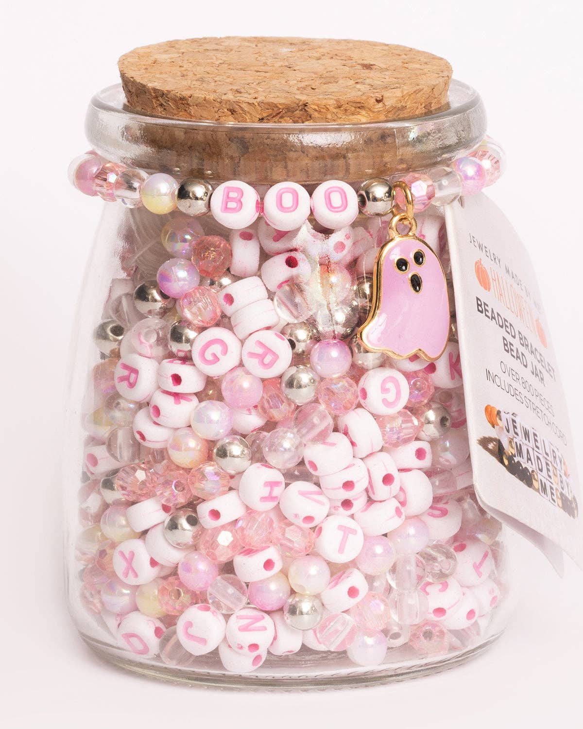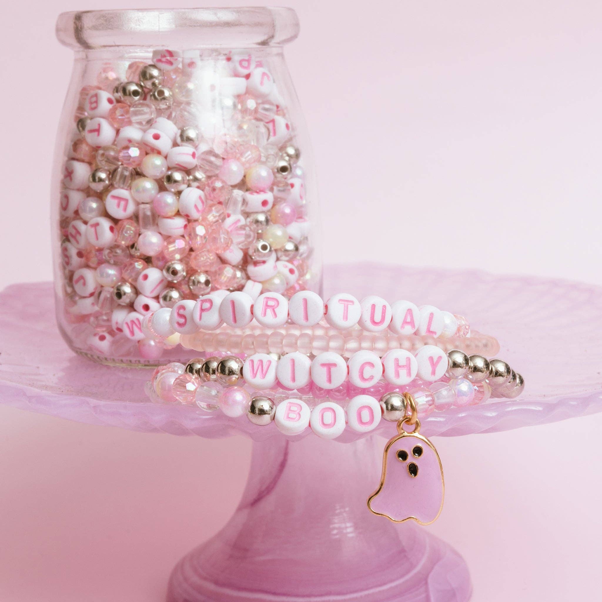 BOO Pastel Pink Letter Bead & Ghost Charm DIY Bead Jar