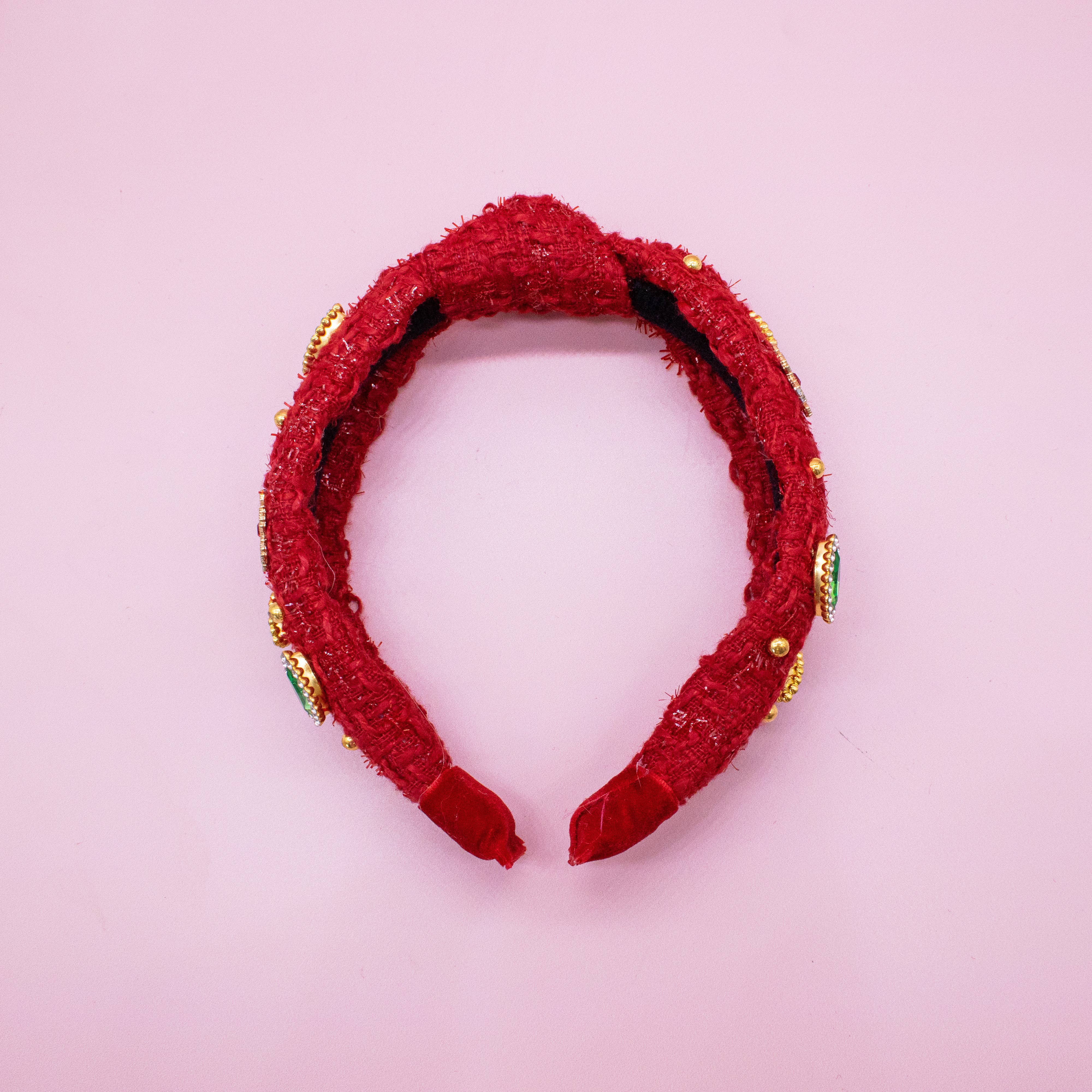 Christmas Knot Headband - Embellished Tweed Rhinestone Pearl